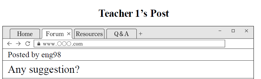 Below are the posts made by two English teachers on online teacher community where teachers can share their ideas and provide each other with help regarding the use of digital technology. ![]() I'm teaching middle school students. My students are not interested in writing. I think it's because I'm the only one who reads their work. It seems they do not have a sense of an audience. If someone other than me reads their writing, I think they'll be more conscious of the quality of their work and put more effort into it. Also, if various multimodal resources are available, my students will be able to express their ideas more creatively. Can you recommend a technological tool that would be appropriate for my students? ![]() I'm looking for a tool to help my students. They love to imrprove their interpersonal skills. But as you know, it's extremely hard to provide enough opportunities for them to communicate with others. Even if I'm trying to incorporate as many speaking activities as possible in my lessons, it's still not enough. I think they need more opportunities to interact with others in English outside fo the classroom. If the tool could help shy students feel less anxious without worrying about their self-image, ti would be even better. ![]() |