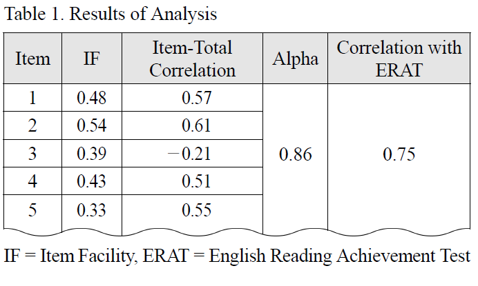 ➜ Teacher 5 and Teacher 6 misinterpret the item analysis results. ➜ Only Item 3 with a discrimination value of -0.21 should be removed to improve the internal consistency of the test, not Item 1 with a value of 0.57, above satisfactory value of 0.3. ➜ The correlation with ERAT indicates concurrent validity by measuring the degree of agreement between test scores and those provided by a similar test administered at the same time. *여기가 잘 안써졌어... |