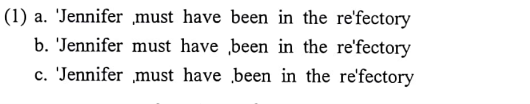 | Consider the sentence Jennifer must have been in the refectory. The only lexical words in this sentence are Jennifer and refectory; the words in between are funcion words, to which no metrical structures are assigned —they are adjoined to the pre eding foot. It is quite clear that a foot, containing no fewer than eight unstressed syllables, constitutes a serious disruptionof stress timing in any utterance. Speakers are more likely ot adopt on oe fhte folloiwng scansions in (1). ![]() Note that none of these tree versions of the sentence places any particular emphasis on any of the words that have now received additional beats in performance. What function words are capable of receiving such rhythmically motivated stresses? (2) a. ˈJennifer must ˌbe in the reˈfectory. b. ˈJennifer ˌmust be in the reˈfectory. c.*ˈJennifer ˌmust ˌbe in the reˈfectory. d. ˈJohn must ˌbe in the reˈfectory. e.*ˈJohn ˌmust be in the reˈfectory. Note that the starred sentences (2)c, e, are only acceptable if they carry some emphasis on the stressed function words; the others have once again no particular emphasis on any of the stressed syllables. In (2c), ˌmust ˌbe cannot both receive a nonemphatic stress while ˌmust havaeˌbeen (1c) can; and similarly, *ˈJohn ˌmust be in (2e) is possible only under emphasis while ˈJennifer ˌmust be is again unmarked for emphasis. Another device of creating rhythmic beats in an utterance is that of inserting silent stresses — beats that are not filled by syllables but by brief pauses. Consdier again the statement of Jennifer's whereabouts, this time uttered like this: ' ˈJennifer ʌ must haveˌbe in the reˈfectory. (wherre the' ʌ ' indicates a silent stress). Unlike the distribution of pauses in speech, that of silent stresses in a sentence is not random. Silent stresses seem to occur principally at major syntactic boundaries — indeed, it is one of the functions of silent stresses to mark such boundaries in speech, and thereby possibly to resolve ambiguities. Now consider the ambiguous phrase " ˈold ˈmen and ˈwomen". In speech teh ambiguity may be resolved by silent stresses. |